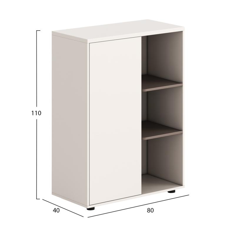Η αριστερή πλευρά διαθέτει ντουλάπι με 2 ράφια, τα οποία δημιουργούν 3 ξεχωριστούς χώρους αποθήκευσης, ιδανικούς για αρχεία και αντικείμενα που χρειάζονται τακτοποίηση. Η δεξιά πλευρά αποτελείται από ανοιχτό χώρο αποθήκευσης τύπου βιβλιοθήκης, επίσης με 2 ράφια, ακολουθώντας την ίδια εργονομική διάταξη, προσφέροντας άμεση πρόσβαση και ευελιξία στη χρήση.