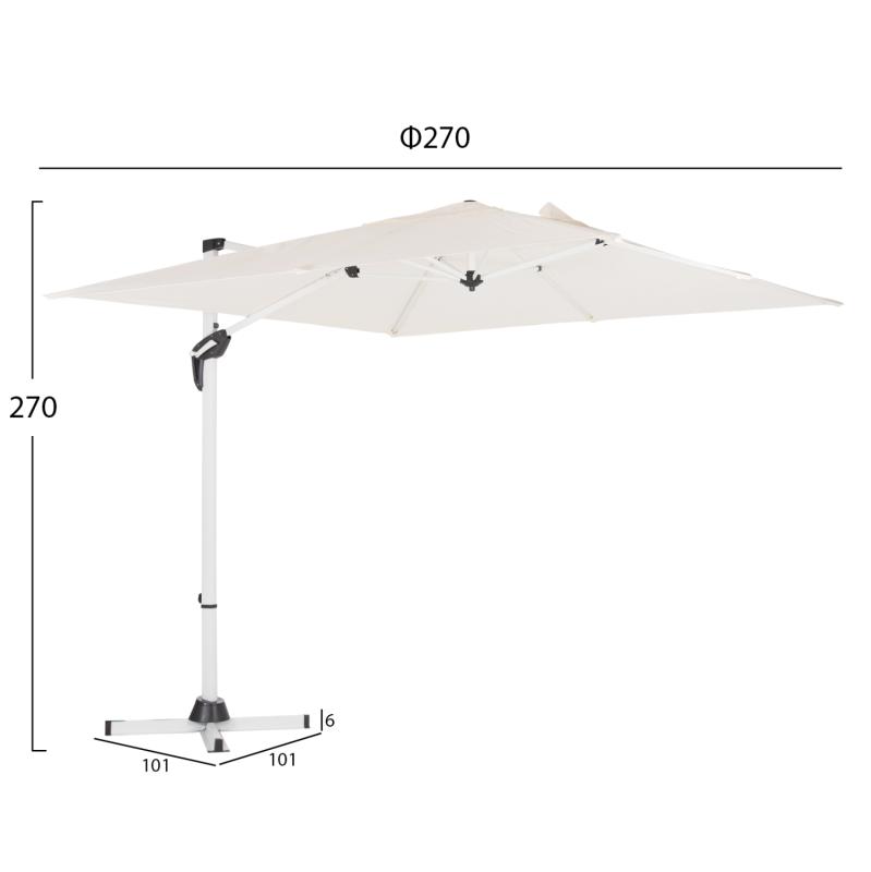 Ομπρέλα Κήπου/Πισίνας JAVANTE 2.7x2.7m με Πλευρικό Ιστό (κρεμαστή) & Περιστροφή 360° – ΛΕΥΚΗ