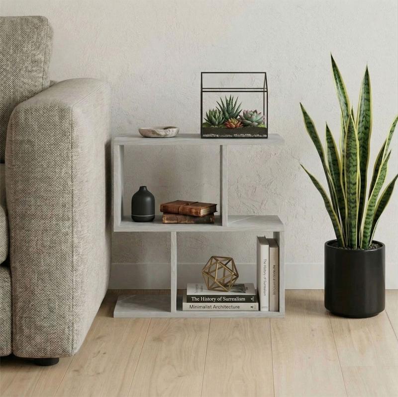 Βοηθητικό τραπέζι-βιβλιοθήκη Wesmol pakoworld γκρι όψη μαρμάρου 50x20x50εκ