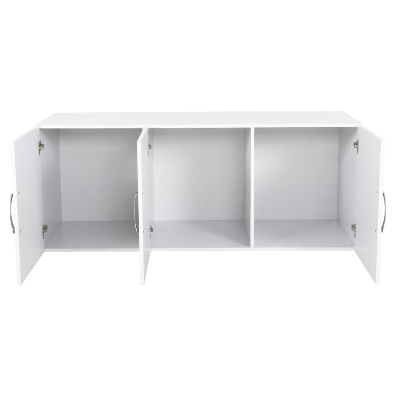 Το CARLY είναι ένα πατάρι για 3-φυλλη ντουλάπα. Πρόκειται για ένα πρακτικότατο συμπλήρωμα που έχει φτιαχτεί με γνώμονα την όσο το δυνατόν καλύτερη εκμετάλλευση του χώρου. Οι διαστάσεις είναι ικανοποιητικές και είναι χωρισμένο σε 3 ισομεγέθη διαμερίσματα που κλείνουν με μια διπλή και μία μονή πόρτα. Και οι 3 πόρτες έχουν κάθετα μεταλλικά χερούλια, ενώ το εσωτερικό των διαμερισμάτων είναι κενό. Δεν διαθέτουν ράφια ή κάτι άλλο και ενδείκνυνται για αποθήκευση ογκωδών αντικειμένων. Το πατάρι είναι κατασκευασμένο από μελαμίνη σε ΛΕΥΚΟ χρώμα και εσείς πρέπει απλά να το ταιριάξετε με την υπάρχουσα ντουλάπα σας, τόσο χρωματικά, όσο και από πλευράς διαστάσεων.