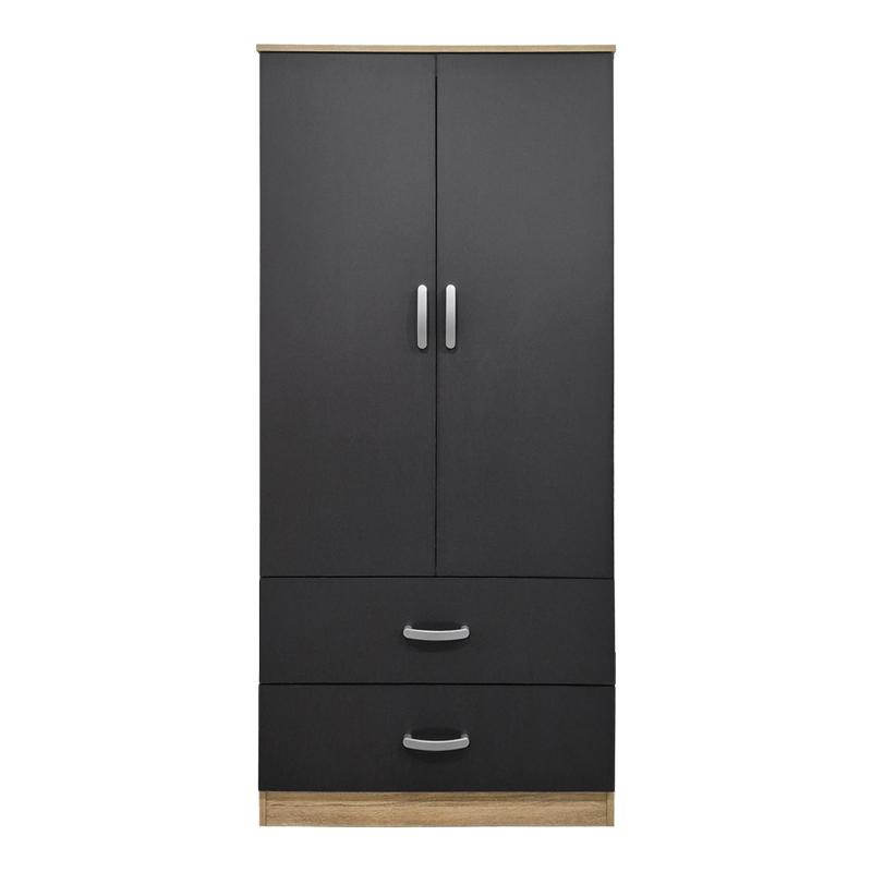 Ντουλάπα δίφυλλη με 2 συρτάρια Alvia pakoworld sonoma-ανθρακί 80x51.5x180εκ