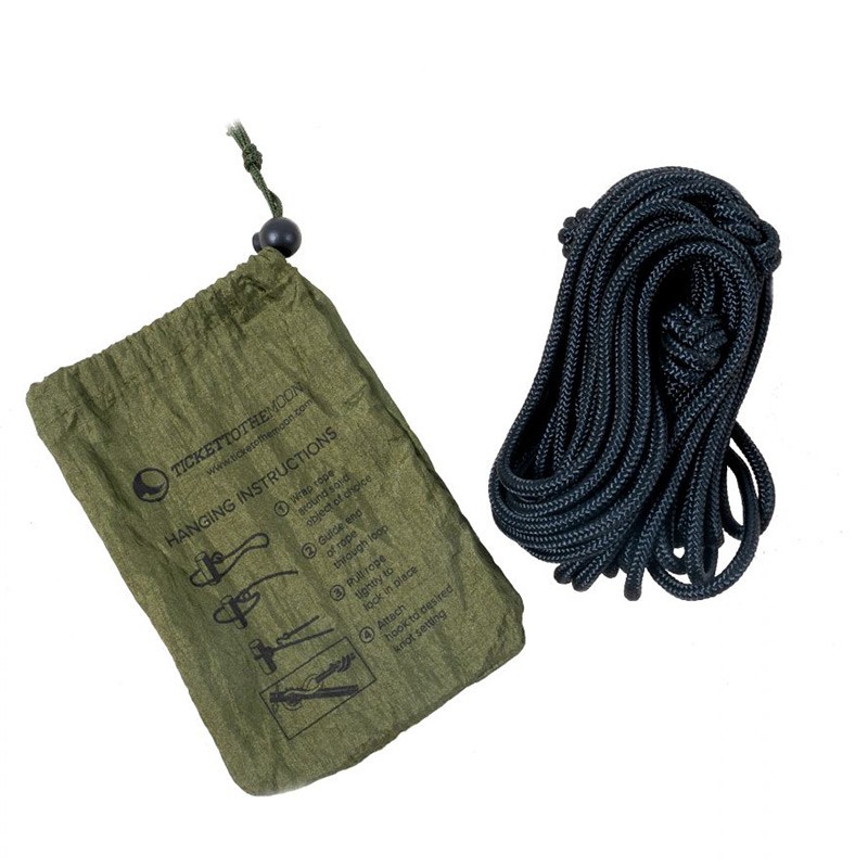 Στα πλαίσια μιας ολοκληρωμένης γκάμας αξεσουάρ γύρω από την αιώρα, η TICKETTOTHEMOON προσφέρει ένα σετ σχοινιών εξαιρετικής αντοχής και εμφάνισης, με έτοιμους κόμπους που προσαρμόζονται ανάλογα με τις ανάγκες σας.