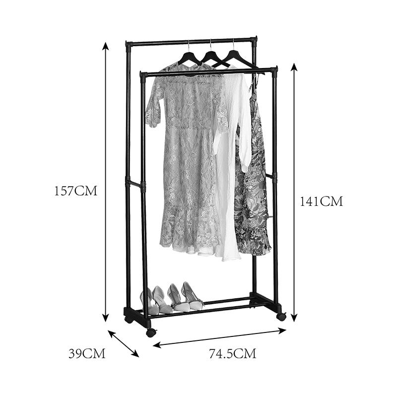 • Σχεδιασμός: Κατασκευή με διπλές μπάρες ρούχων σε ίσιο, minimal πλαίσιο. Το μαύρο ματ χρώμα του μετάλλου προσδίδει μια σύγχρονη και διακριτική industrial αισθητική.