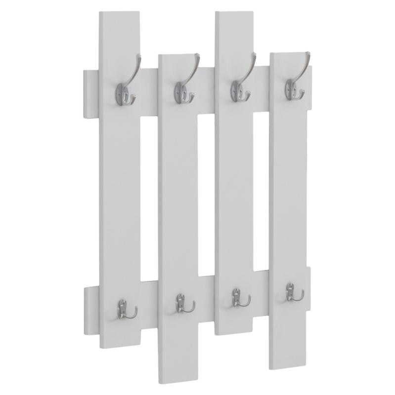 Η WESSON είναι μία επιτοίχια κρεμάστρα μελαμίνης σε χρώμα ΛΕΥΚΟ, με 8 διπλές μεταλλικές θέσεις κρέμασης σε ασημί χρώμα. Ένα χρήσιμο και πρακτικό «εργαλείο» κυρίως για την είσοδο του σπιτιού, αλλά και για διάφορα άλλα δωμάτια, που θα σας βοηθήσει να τακτοποιήσετε τον χώρο σας με τον καλύτερο τρόπο.