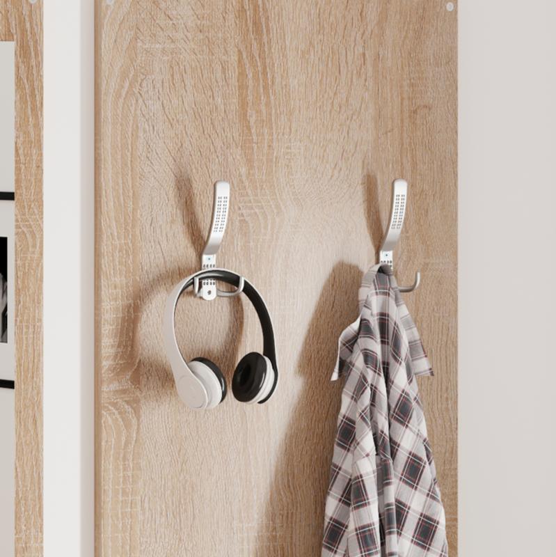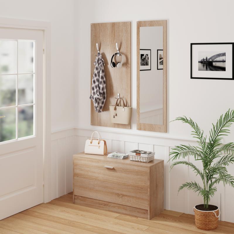 Το έπιπλο εισόδου VERN αποτελείται από 3 κομμάτια. Μία κλασική παπουτσοθήκη, μία κατασκευή με κρεμάστρες ως βεστιάριο αναρτημένη στον τοίχο και ένας καθρέπτης δίπλα από τις κρεμάστρες. Ένα σετ μελαμίνης σε εντυπωσιακό χρώμα SONAMA που θα σας ενθουσιάσει με την πρακτικότητα του, μιας και το κάθε κομμάτι είναι ανεξάρτητο και μπορεί να τοποθετηθεί οπουδήποτε σας βολεύει καλύτερα.