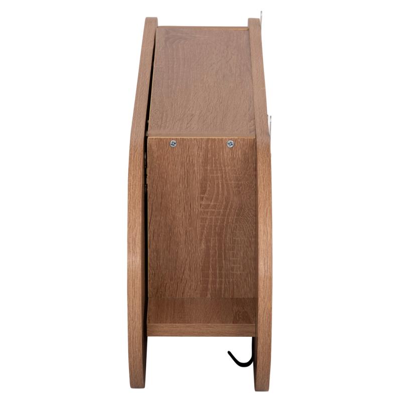 Η επιτοίχια κρεμάστρα εισόδου μελαμίνης STOR σε SONAMA χρώμα είναι μια πρακτική πρόταση διακόσμησης για τον χώρο υποδοχής του σπιτιού σας, που θα σας βοηθήσει να δημιουργήσετε έναν καλά οργανωμένο και τακτοποιημένο χώρο. Έχει σχήμα οβάλ και διαθέτει 6 μονές κρεμάστρες (γαντζάκια) και 1 ορθογώνιο χώρο τοποθέτησης αντικειμένων/ράφι, το οποίο όμως κλείνει, αφού η εμπρός επιφάνεια αποτελεί την πόρτα του ραφιού. Αυτή η πόρτα ανοίγει προς τα επάνω και «κρύβει» εκτός από το ράφι, και τις κρεμάστρες.