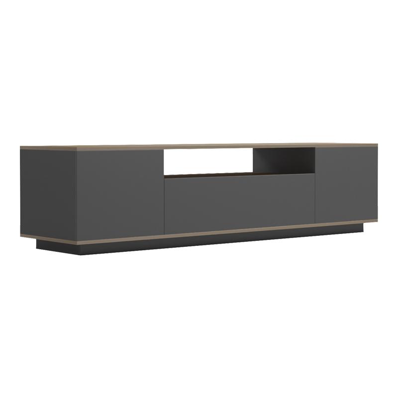 Αναβαθμίστε την ψυχαγωγική σας γωνιά με αυτό το σύγχρονο και ευέλικτο έπιπλο τηλεόρασης, σχεδιασμένο για να προσφέρει τόσο στυλ όσο και άφθονο αποθηκευτικό χώρο. Ο συνδυασμός του γκρι φινιρίσματος με τη ζεστή απόχρωση του ξύλου δημιουργεί μια αισθητική που ταιριάζει άψογα σε μοντέρνους και μινιμαλιστικούς χώρους.