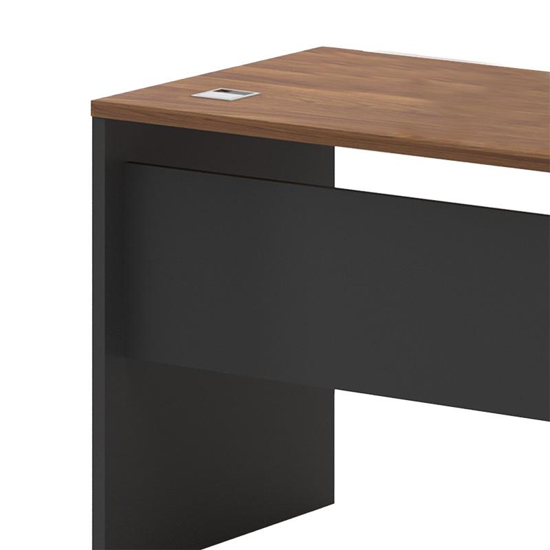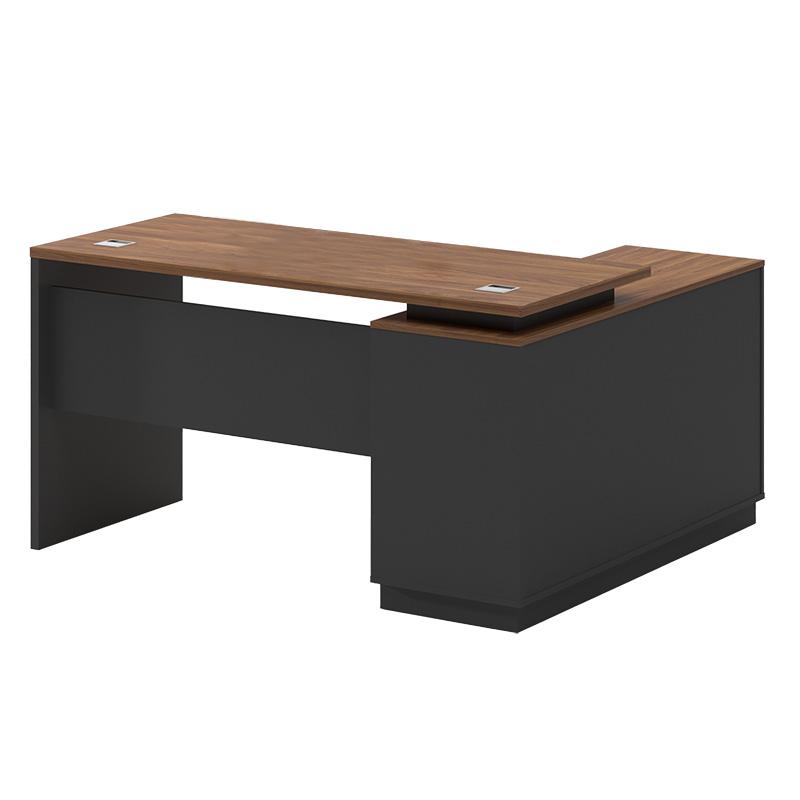 Γραφείο διεύθυνσης με ενσωματωμένο γωνιακό ερμάριο (στη αριστερή πλευρά), στον εντυπωσιακό χρωματισμό του καρυδί - ανθρακί. Κατασκευασμένο από υλικά υψηλών προδιαγραφών και σύμφωνα με τις εργονομικές απαιτήσεις του σήμερα.