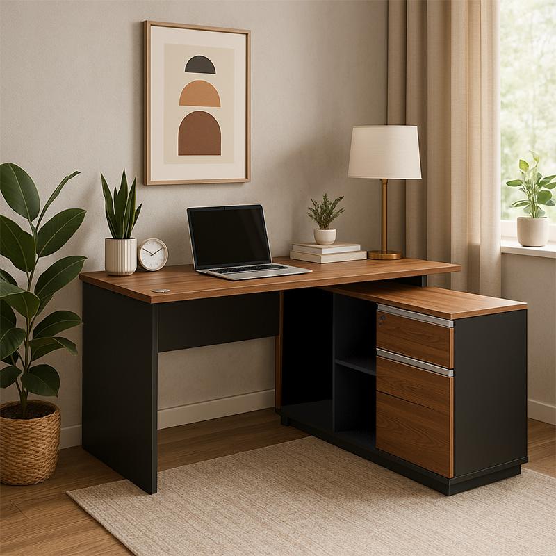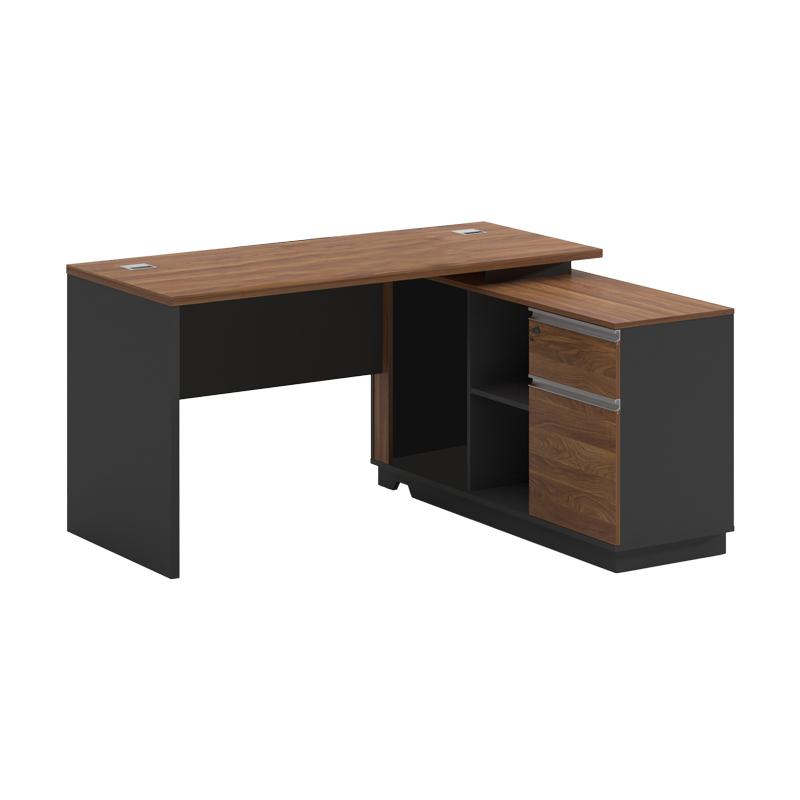 Γραφείο επαγγελματικό με δεξιά γωνία Oscar pakoworld μελαμίνη σε καρυδί-ανθρακί απόχρωση140x120x76εκ