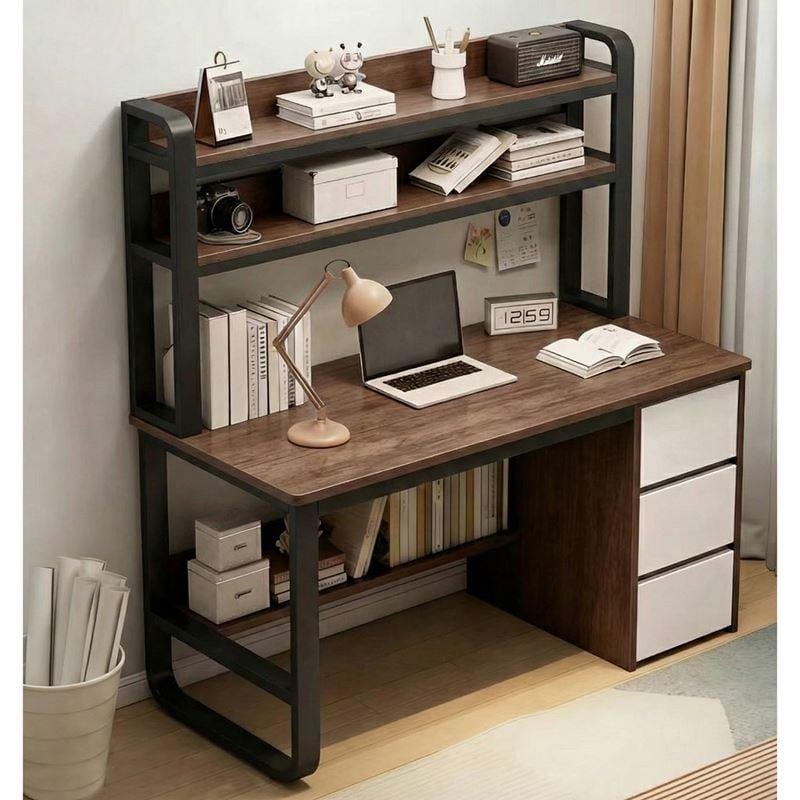 ΓΡΑΦΕΙΟ Η/Υ 3 Συρτάρια 3 Ράφια Μέταλλο Βαφή Μαύρο, MDF 120x50x74/147εκ Απόχρωση Καρυδί
