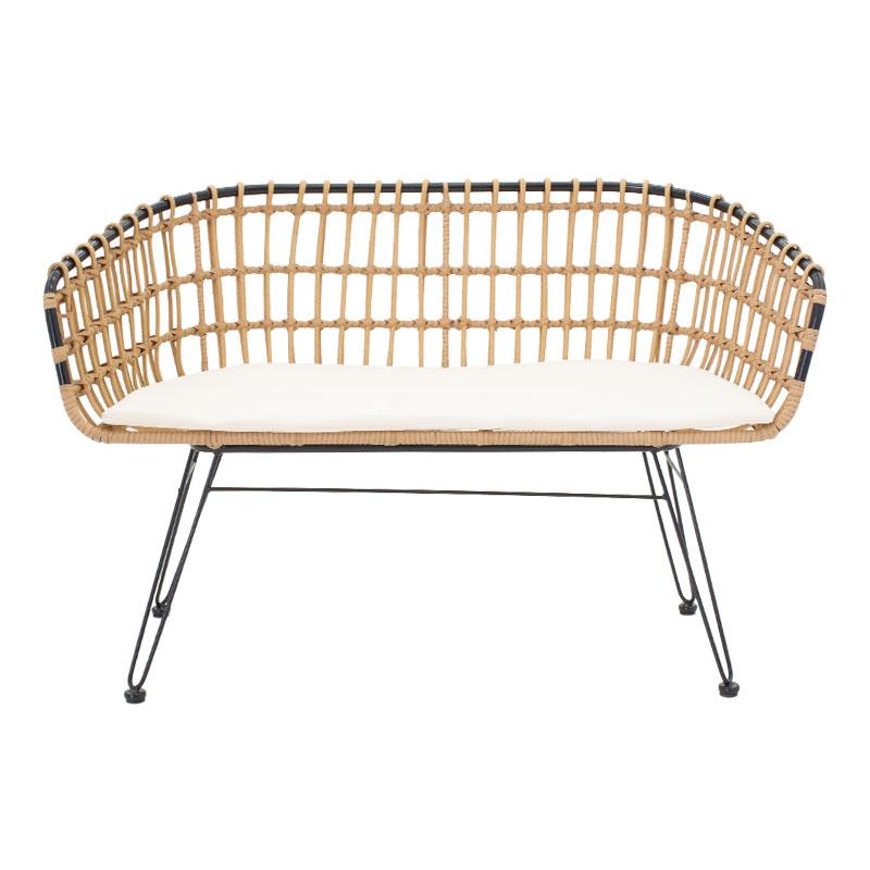 Καναπές 2θέσιος Naoki pakoworld μέταλλο μαύρο-pe φυσικό 120x55x79εκ