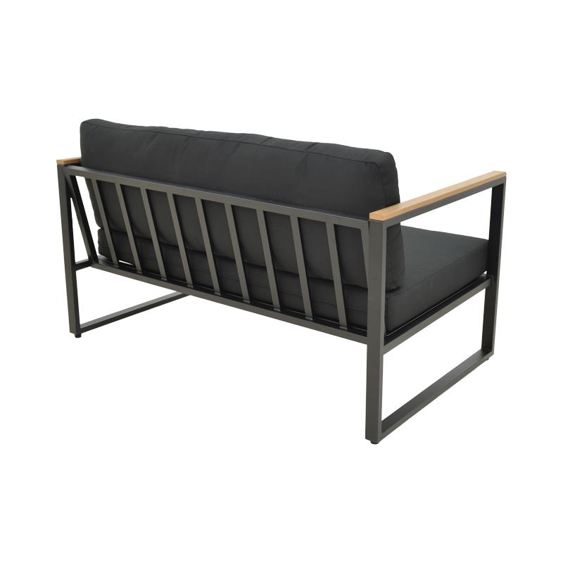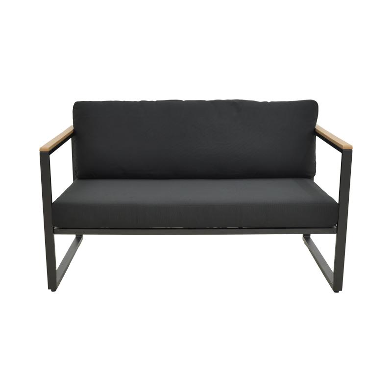 Αναβαθμίστε τον εξωτερικό ή εσωτερικό σας χώρο με τον 2θέσιο καναπέ Aurelio. Με στιβαρό ατσάλινο σκελετό και κομψές, μοντέρνες γραμμές, συνδυάζει στυλ, άνεση και μακροχρόνια αντοχή. Τα μπράτσα με επένδυση plywood προσθέτουν μια φυσική πινελιά, ενώ τα πλούσια μαξιλάρια εξασφαλίζουν μια premium εμπειρία καθίσματος.