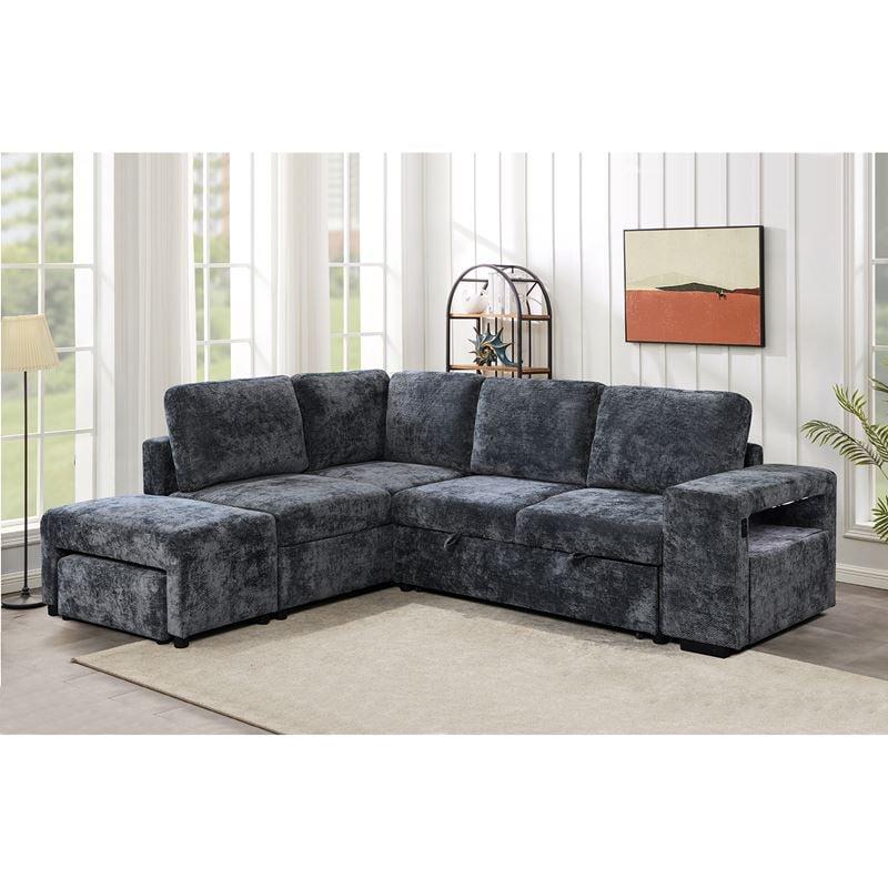 FLEXY Καναπές Δεξιά Γωνία - Κρεβάτι, με Χώρους Αποθήκευσης φωτιζόμενο, Ύφασμα Ανθρακί