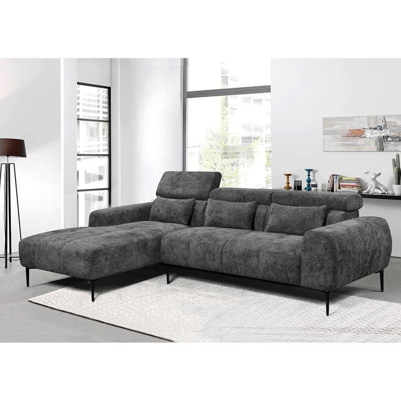 ELORA Καναπές Σαλονιού Δεξιά Γωνία, Ανακλινόμενα Κεφαλάρια, Ύφασμα Γκρι