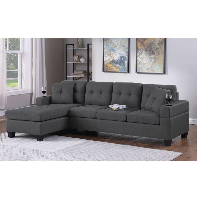 JORDAN Καναπές Σαλονιού Γωνία Αναστρέψιμος, Ύφασμα Γκρι, Μπράτσα με ποτηροθήκες