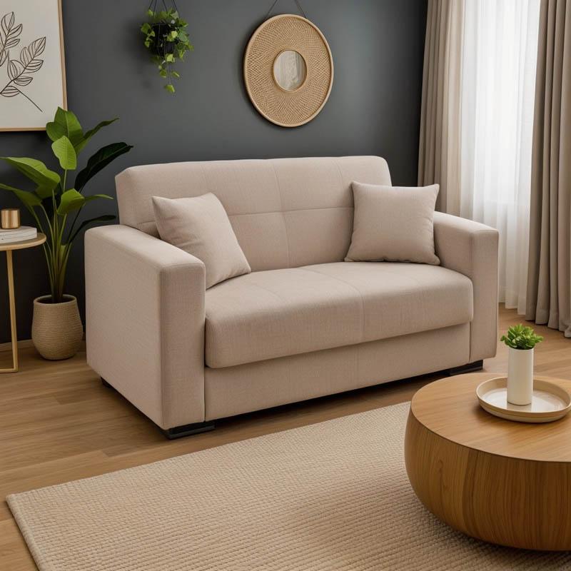 Καναπές-κρεβάτι με αποθηκευτικό χώρο διθέσιος Vox pakoworld κρεμ ύφασμα 154x82x83εκ