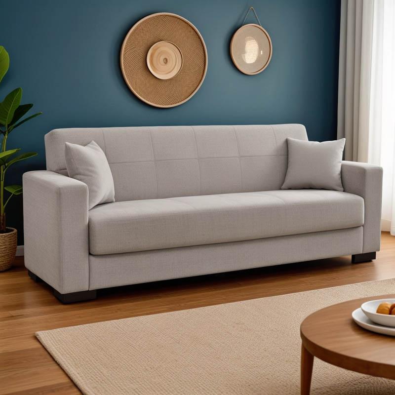 Καναπές-κρεβάτι με αποθηκευτικό χώρο τριθέσιος Vox pakoworld ανοιχτό γκρι ύφασμα 214x82x83εκ