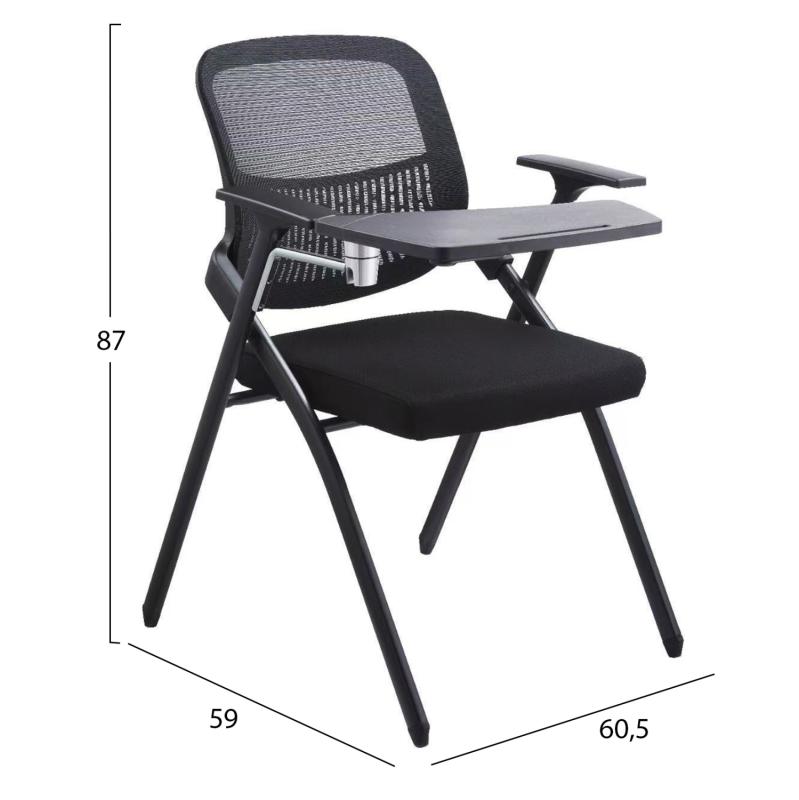 Πτυσσόμενη Καρέκλα Συνεδρίου DENO | Τηλεσκοπικό Αναλόγιο & Ποτηροθήκη | Μαύρο Mesh