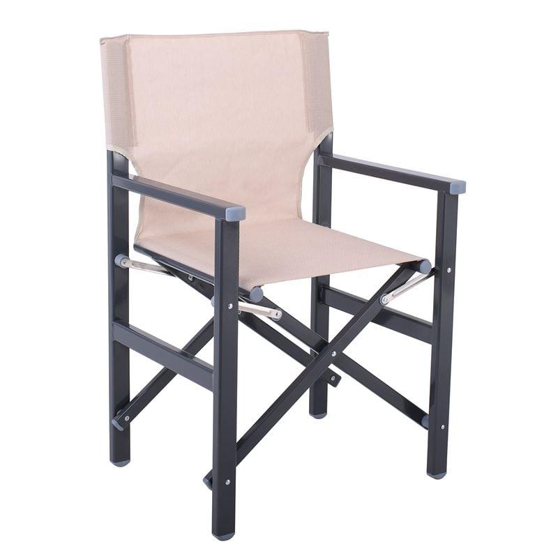 Σκηνοθέτη Πολυθρόνα, Αλουμίνιο Ανθρακί (1,2mm), Textilene Μπεζ (Μονοκόμματο), Πτυσσόμενη