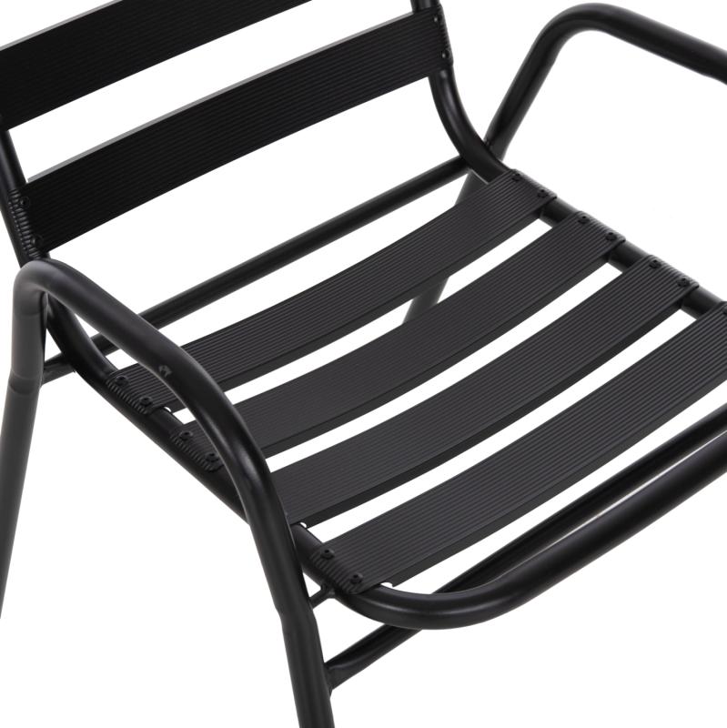 Η καρέκλα εξωτερικού χώρου PRELUDE είναι κατασκευασμένη από μέταλλο και αλουμίνιο σε ΜΑΥΡΟ χρώμα. Ο σκελετός της είναι μεταλλικός, ενώ η πλάτη και το κάθισμα αποτελούνται από «φέτες» αλουμινίου. Σχεδιαστικά, είναι λιτή με όμορφες καμπύλες και χαμηλά μπράτσα, ενώ το γεγονός ότι είναι ελαφριά και ΣΤΟΙΒΑΖΟΜΕΝΗ την κάνει ιδιαιτέρως πρακτική αφού μπορείτε να την αποθηκεύσετε εύκολα στον μικρότερο δυνατό χώρο.