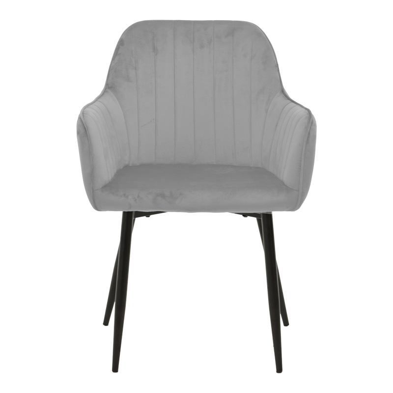 Πολυθρόνα Noor pakoworld γκρι βελούδο με πόδι μετάλλου σε μαύρη απόχρωση 58x58x86εκ