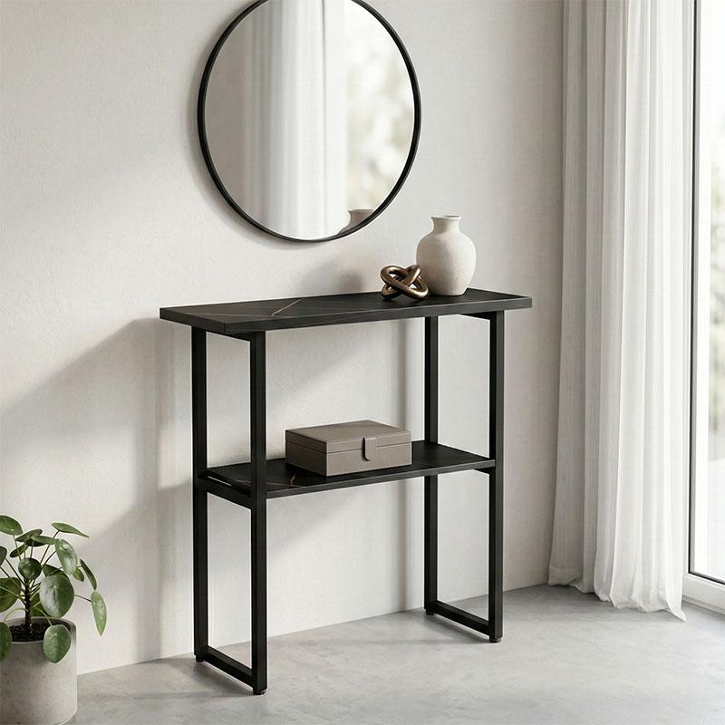 Κονσόλα Solain pakoworld μαύρο εφε μαρμάρου-μαύρο μέταλλο 79x29x85εκ
