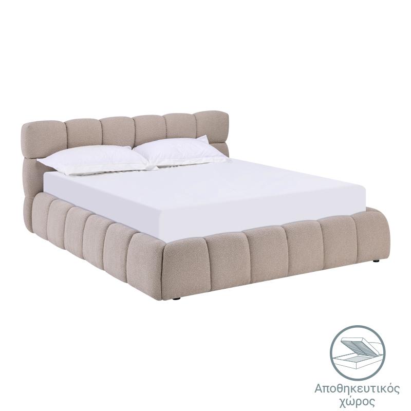 Κρεβάτι Jeby pakoworld ύφασμα σε μπεζ απόχρωση με αποθηκευτικό χώρο 160x200εκ