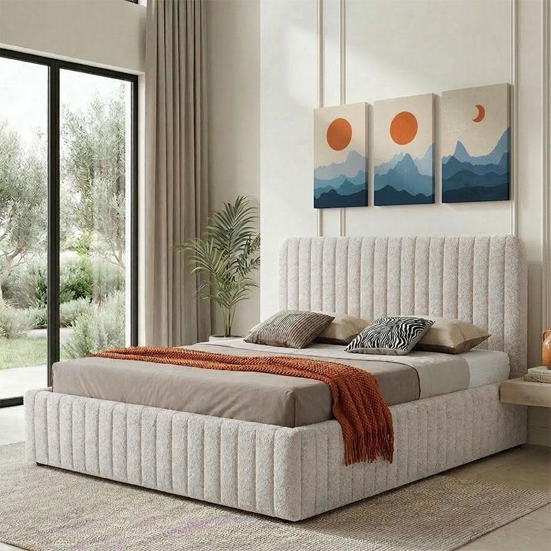 Κρεβάτι διπλό Zilin pakoworld ύφασμα μπουκλε μπεζ με αποθηκευτικό χώρο 160x200εκ