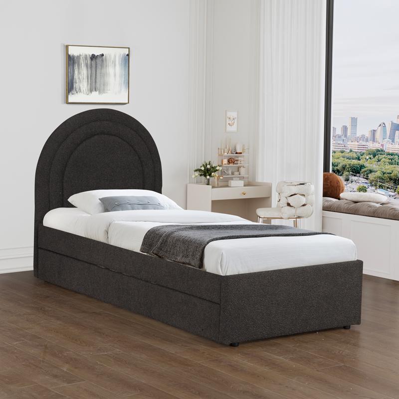 Κρεβάτι Arcuate pakoworld μπουκλέ υφασμα ανθρακί με συρόμενο 90x200εκ