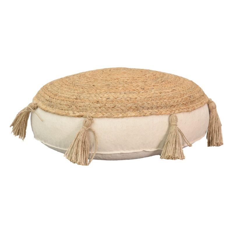 Πουφ Elefon Inart φυσικό-εκρού ύφασμα Φ40x7.5εκ