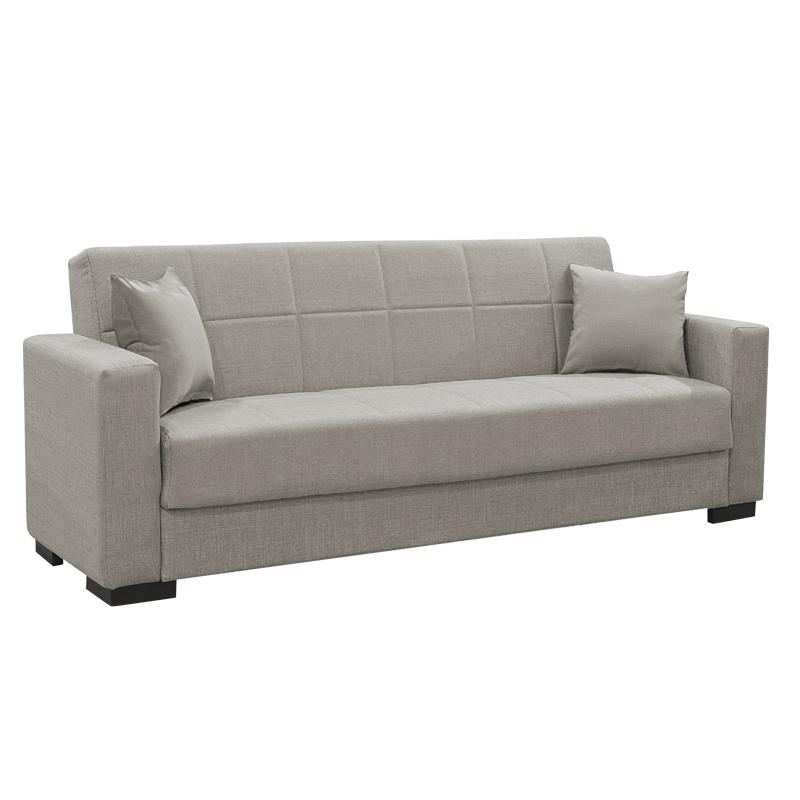 2. Καναπές-κρεβάτι με αποθηκευτικό χώρο διθέσιος Vox pakoworld ανοιχτό γκρι ύφασμα 154x82x83εκ