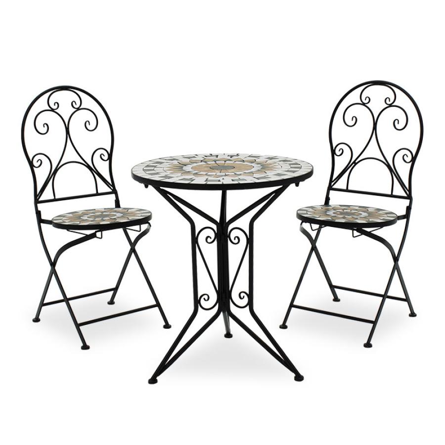 Τραπεζαρία Mosaic pakoworld σετ 3τεμ μέταλλο μαύρο