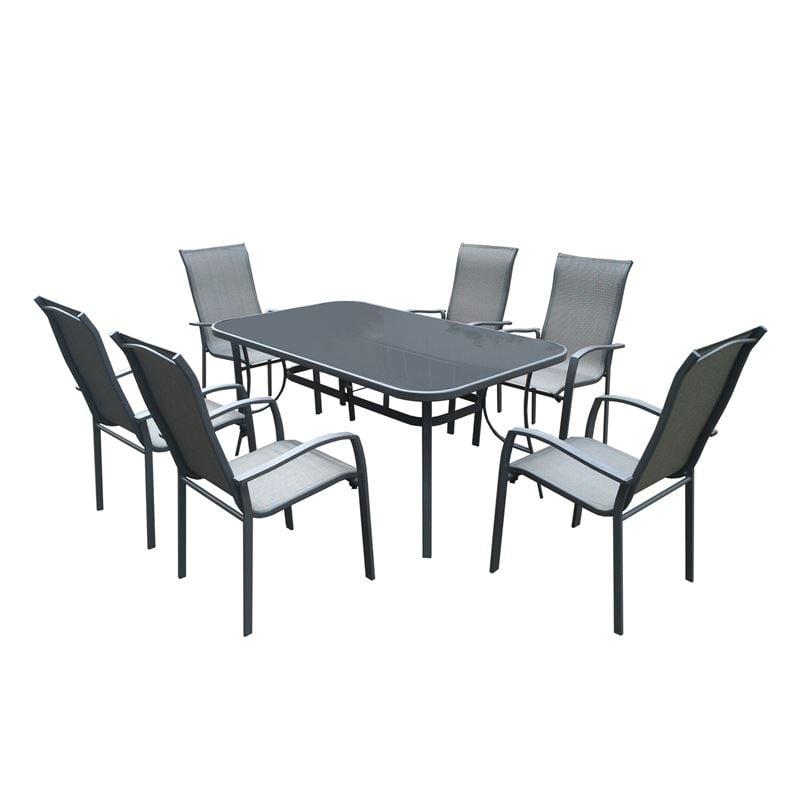 VERONA Set Τραπεζαρία Κήπου: Μέταλλο - Textilene Ανθρακί, :Τραπέζι 160x96 + 6 Πολυθρόνες