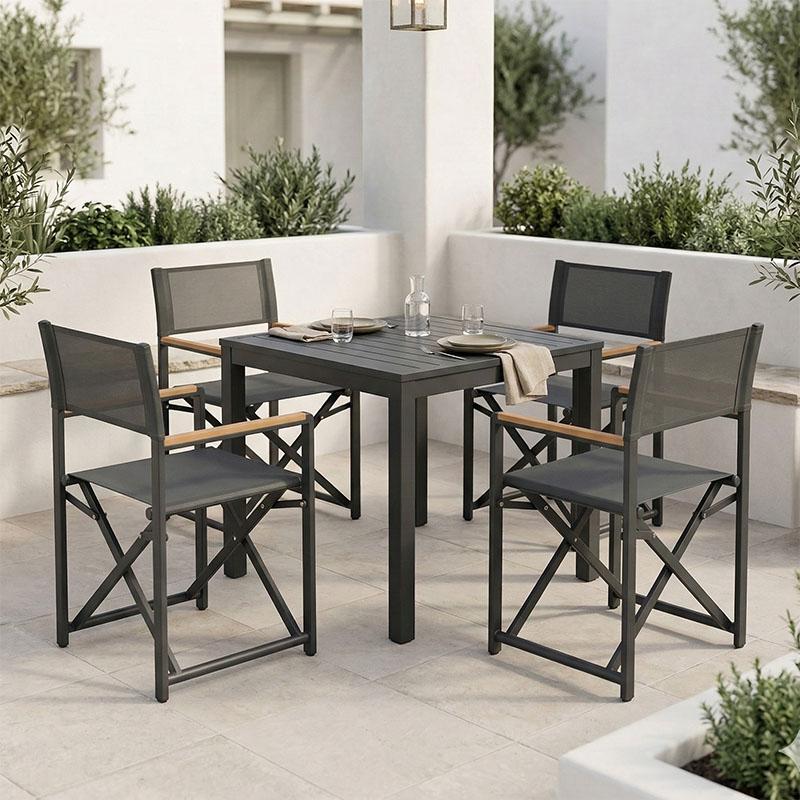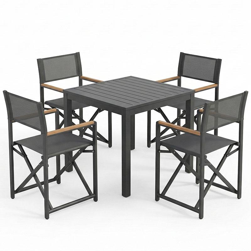 Τραπεζαρία Kliton-Mabu σετ 5τεμ pakoworld αλουμίνιο σε ανθρακί απόχρωση 80x80x74εκ