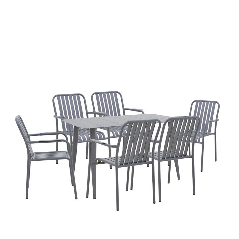 Τραπεζαρία Heven Vista pakoworld σετ 7τεμ ανθρακί αλουμίνιο 120x70x72εκ