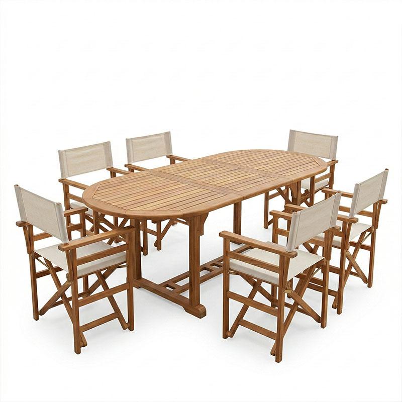 Τραπεζαρία Bistrual-Sopho pakoworld σετ 7τεμ επεκτεινόμενο φυσικό μασίφ ξύλο ακακίας 200/150x100x75εκ