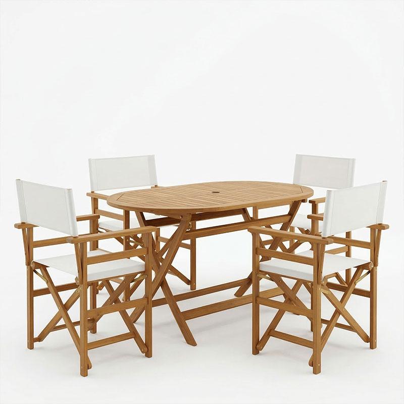 Τραπεζαρία Bistrual-Falov pakoworld σετ 5τεμ πτυσσόμενο φυσικό μασίφ ξύλο ακακίας 130x80x72εκ