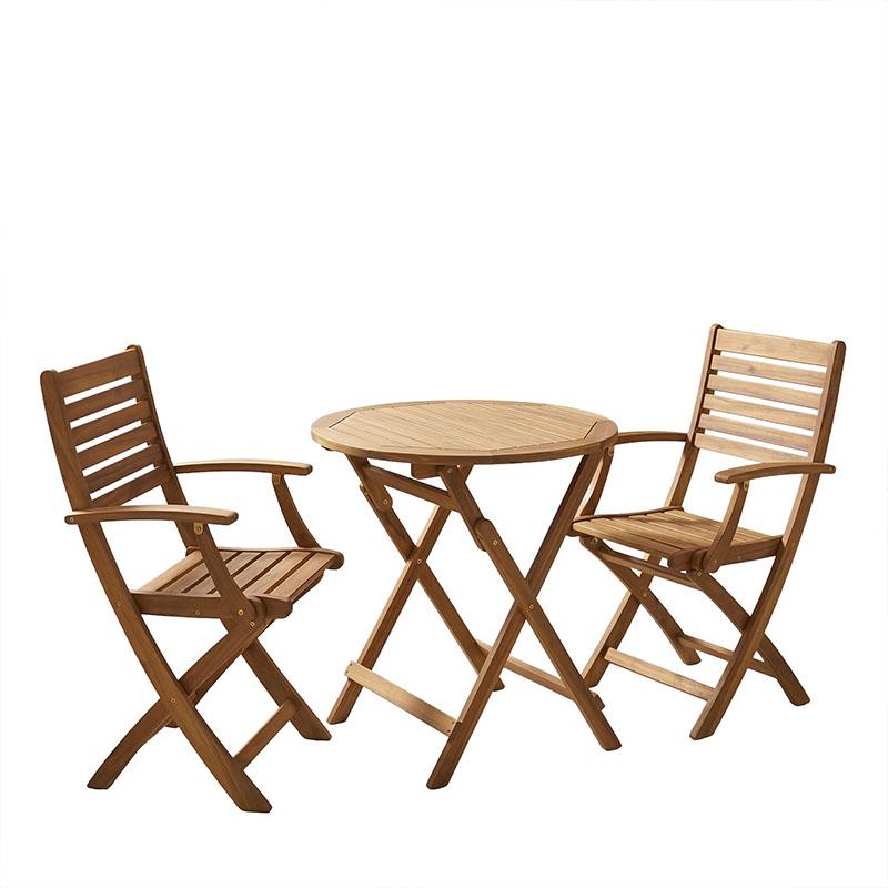 Τραπεζαρία Gorpo-Carpuva pakoworld σετ 3τεμ πτυσσόμενο φυσικό μασίφ ξύλο ακακίας Φ70x74εκ
