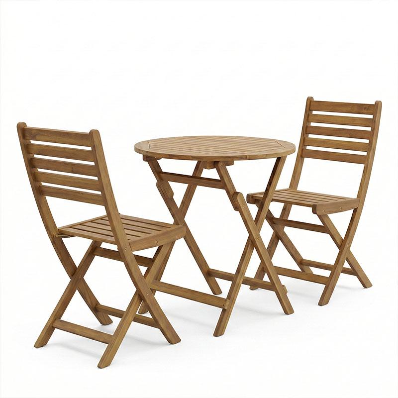 Τραπεζαρία Fatel-Carpuva pakoworld σετ 3τεμ πτυσσόμενο φυσικό μασίφ ξύλο ακακίας Φ70x74εκ