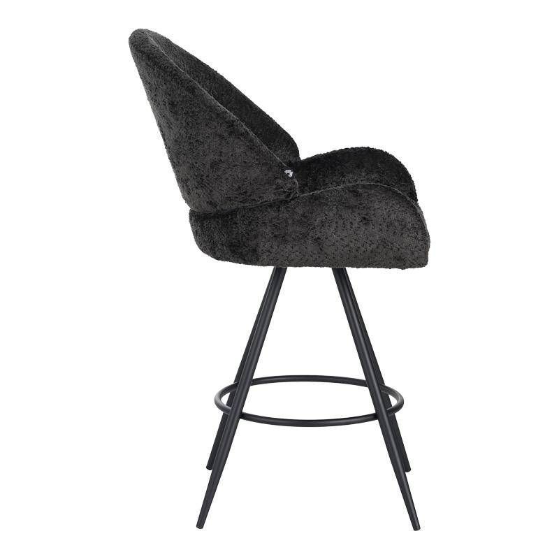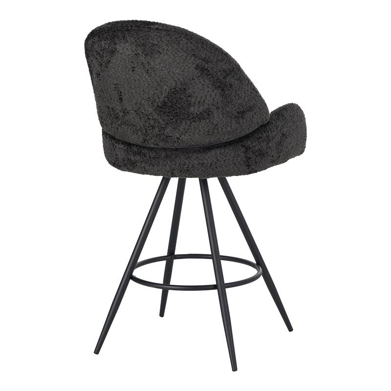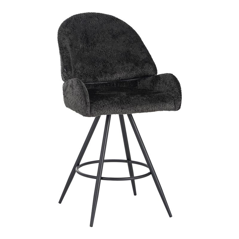 Σκαμπό μπαρ περιστρεφόμενο Morea pakoworld μπουκλέ ύφασμα σε μαύρη απόχρωση με μαύρα μεταλλικά πόδια 55x66x107.5εκ