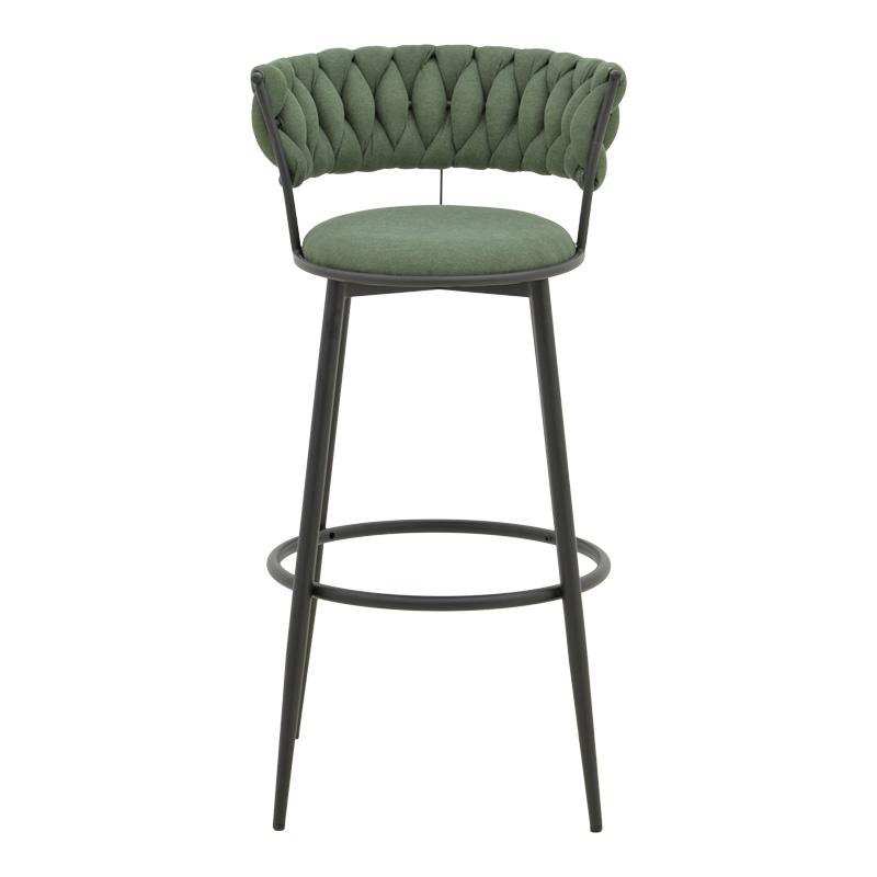 Σκαμπό μπαρ Alkia I pakoworld ύφασμα σε χακί απόχρωση- πόδι μαύρο μέταλλο 50x56x95εκ