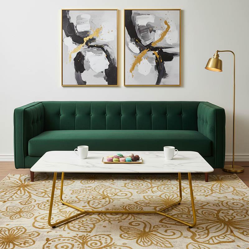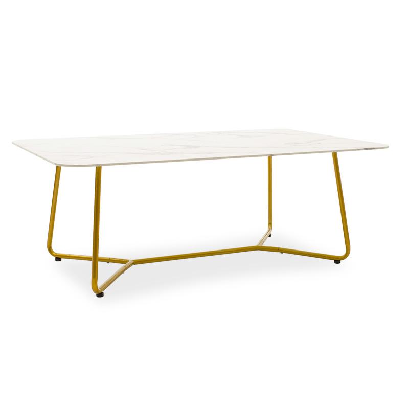 Τραπέζι σαλονιού Paris pakoworld γυαλί 8mm σχέδιο μαρμάρου-χρυσό 120x80x45εκ