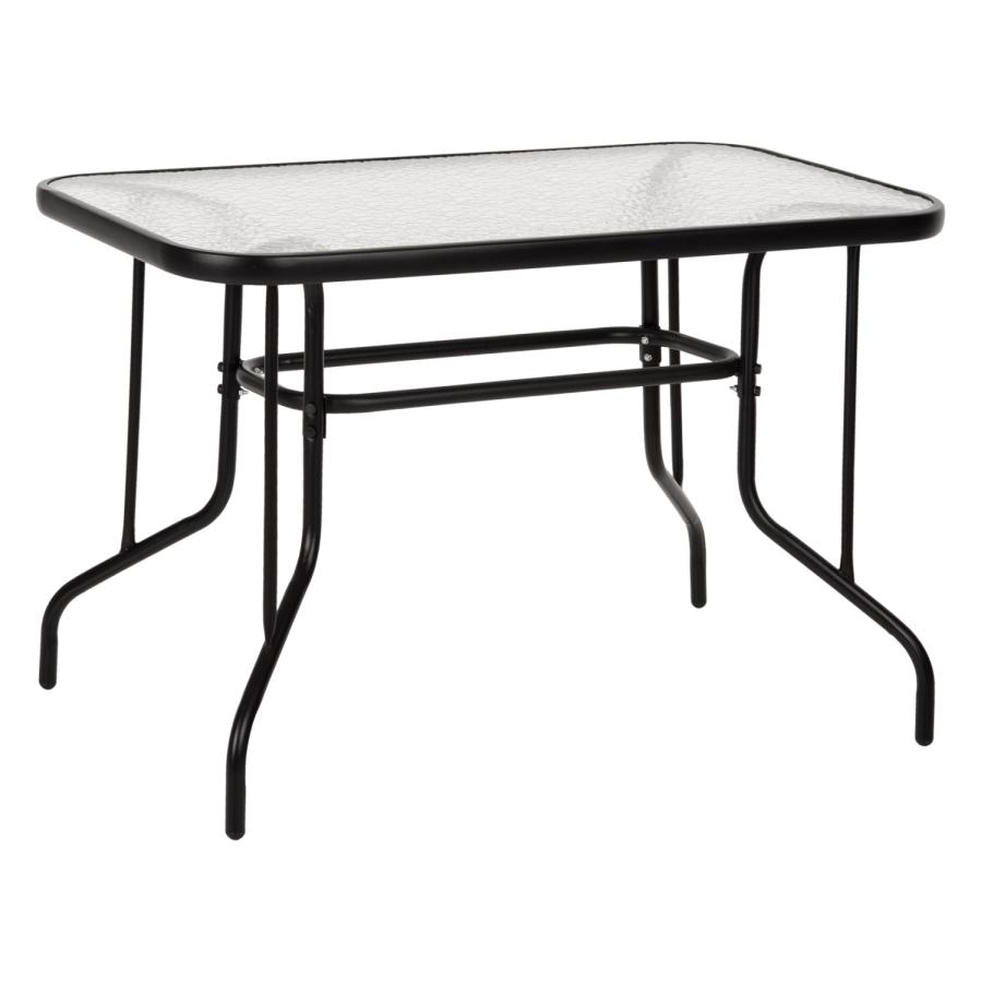 ΗΜ5020.03 Τραπέζι ADAM εξωτερικού χώρου με ΜΑΥΡΟ μεταλλικό σκελετό και γυάλινη θολή επιφάνεια! Πρόκειται για πολύ δημοφιλές τραπέζι που δεν λείπει σχεδόν από κανέναν μπαλκόνι ή κήπο. Το ADAM είναι ορθογώνιο με γωνίες στρογγυλεμένες ενώ το γυαλί της επιφάνειας είναι ενισχυμένο.