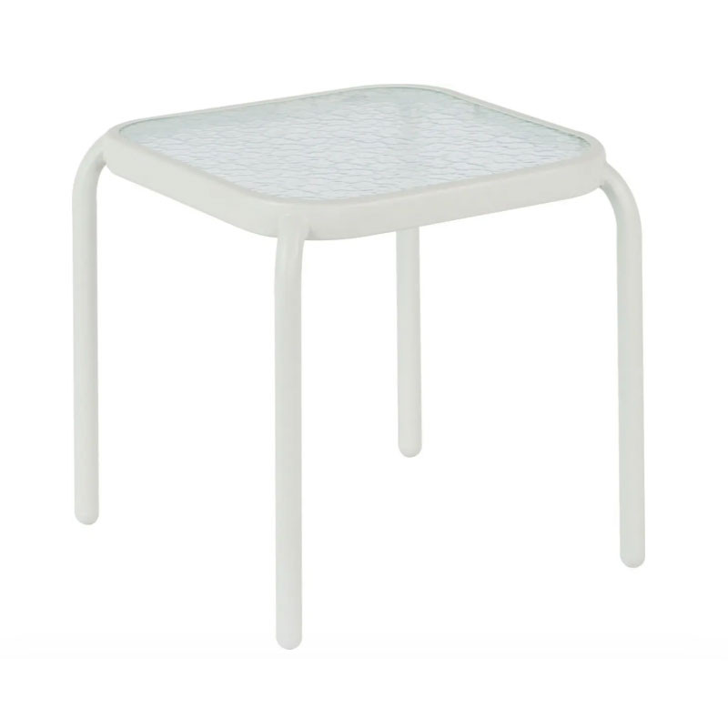 Το βοηθητικό τραπεζάκι εξωτερικού χώρου DIDO σε ΛΕΥΚΟ χρώμα είναι τετράγωνο με στρογγυλεμένες γωνίες και 4 κλασικά πόδια. Πρόκειται για ένα τραπεζάκι στο στυλ πολλών άλλων τραπεζιών που δεν λείπουν σχεδόν από κανέναν μπαλκόνι ή κήπο.
