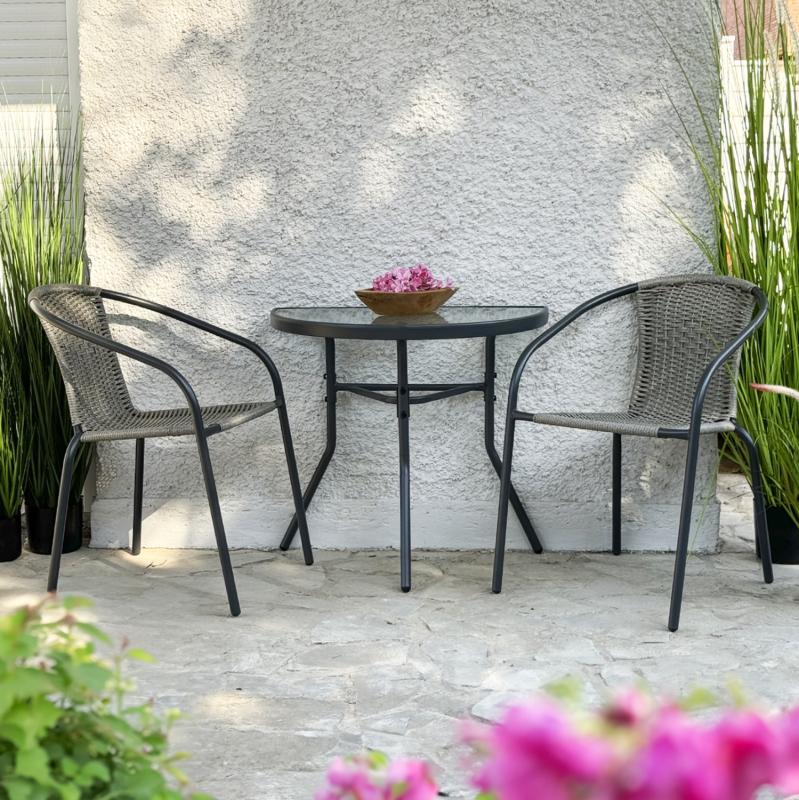 Το LIMA, σε ΓΚΡΙ χρώμα σκελετού, είναι ένα τραπέζι σε σχήμα ημικύκλιου (μισό στρογγυλό) με επιφάνεια από ημιδιάφανο γυαλί ασφαλείας. Η γυάλινη επιφάνεια στηρίζεται σε 3 μεταλλικά πόδια με όμορφη καμπυλωτή διάταξη. Ένα τραπέζι ειδικά κατασκευασμένο για μικρούς και στενούς χώρους, το οποίο έχει την δυνατότητα να εφάπτεται σε τοίχους και κάγκελα, εξοικονομώντας χώρο!