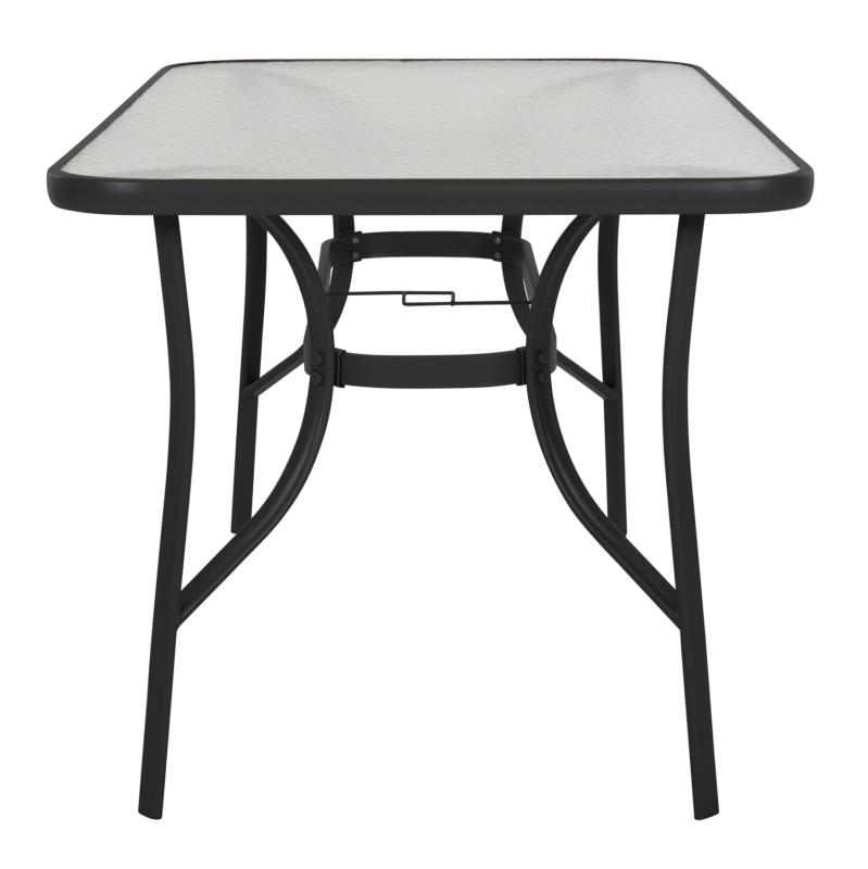 Το τραπέζι BRUNO εξωτερικού χώρου έχει ΜΑΥΡΟ μεταλλικό σκελετό και γυάλινη θολή επιφάνεια! Πρόκειται για πολύ δημοφιλές τραπέζι που δεν λείπει σχεδόν από κανέναν μπαλκόνι ή κήπο. Είναι ορθογώνιο με γωνίες στρογγυλεμένες ενώ το γυαλί της επιφάνειας είναι ενισχυμένο.